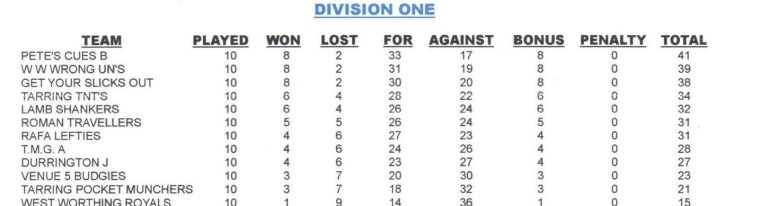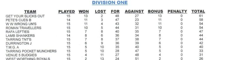18/12/25 vs Tarring Pocket Munchers (a) Won 3-2