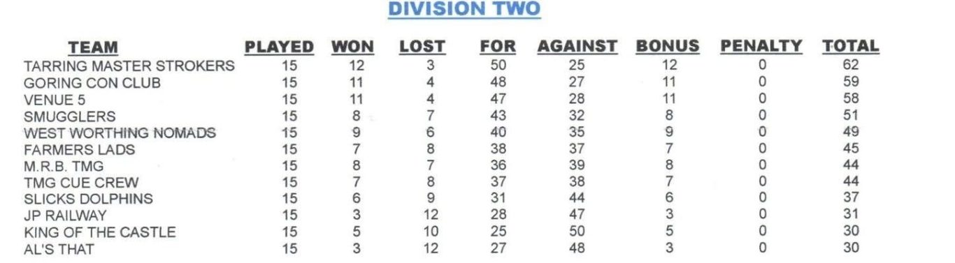2025/25 Winter League Division Two
